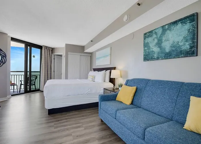 The beachfront 33 m² Winter Rates! Beach Therapy, Our Oceanfront Suite With 2 Balconies 1826 Myrtle Beach is located in Myrtle Beach, nearly 25 minutes' walk from the outdoor fun Broadway at the Beach Mall, and pampers guests with a Jacuzzi and an indoor pool. The 1-bedroom apartment is just 1.6 km from the Rockin' Jump Myrtle Beach Trampoline Park and a few steps from Trinity Episcopal Church.